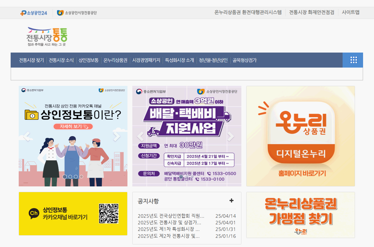 중소벤처기업부에서 운영하는 공식 사이트인 전통시장통통에서는
